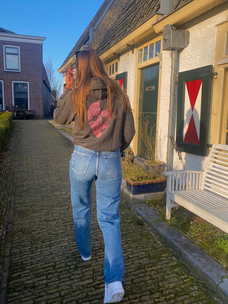 Wij kozen voor een grijze hoodie met een Pink Glitter opdruk voor girlie vibes. En hoe tof is dit! Ons logo is bedrukt aan de voorkant.